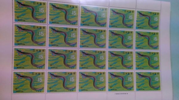 魚介シリーズ切手 鰻(うなぎ) 15円 20面シート 未使用 原画 吉岡堅二 日本芸術院賞受賞 1966
